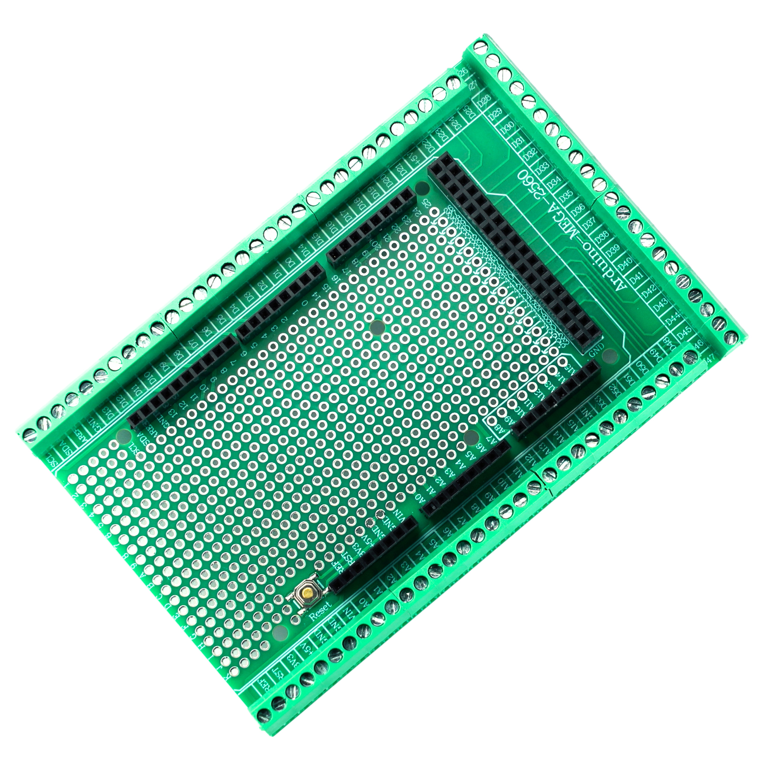 Moduł nakładka (shield) z terminalami śrubowymi ARK dedykowany do Arduino Mega 2560. Umożliwia zamianę standardowych złącz goldpin na złącza śrubowe, co zapewnia wysoką stabilność i niezawodność połączeń. Jest to idealne rozwiązanie do prototypowania oraz projektów wymagających trwałego i bezpiecznego montażu przewodów.