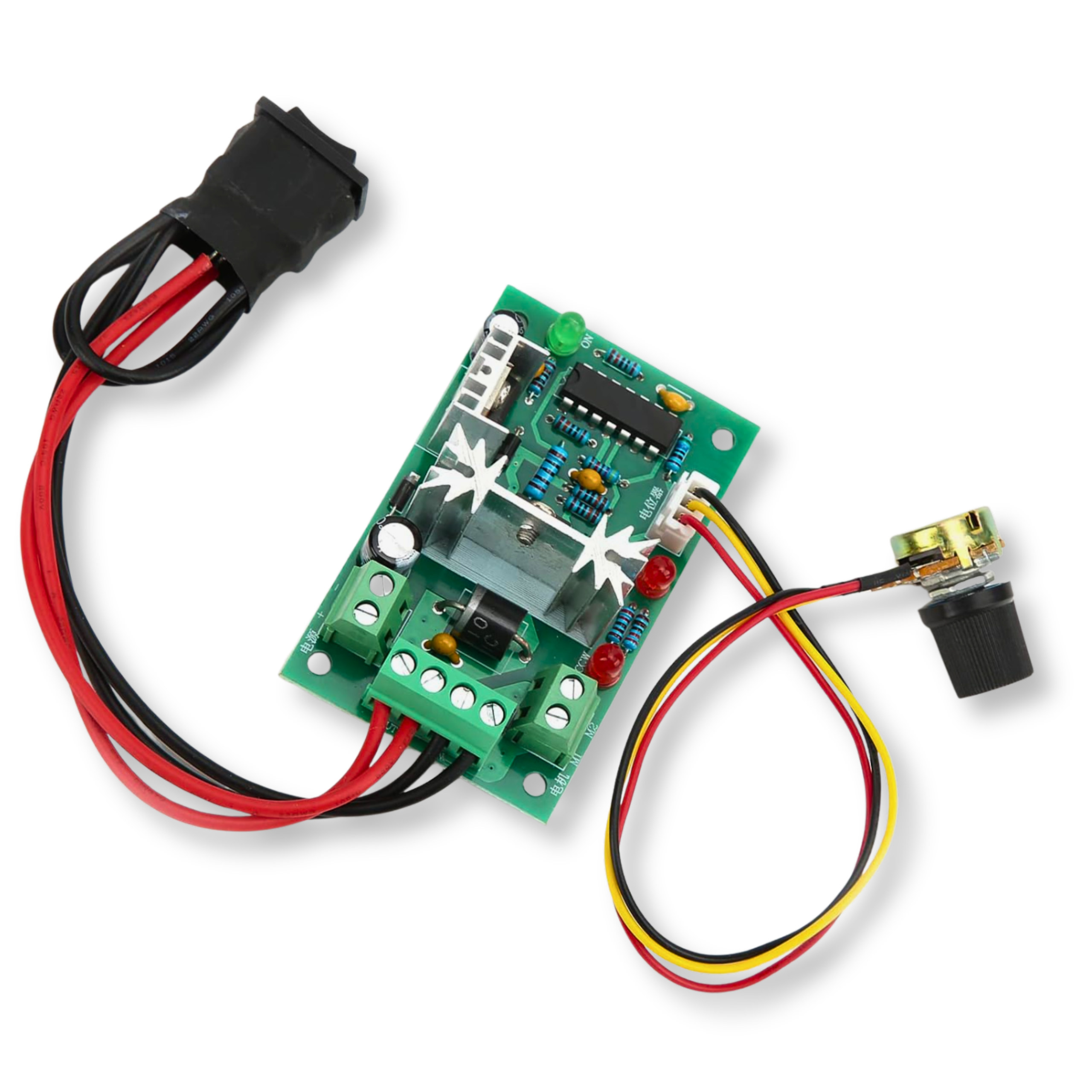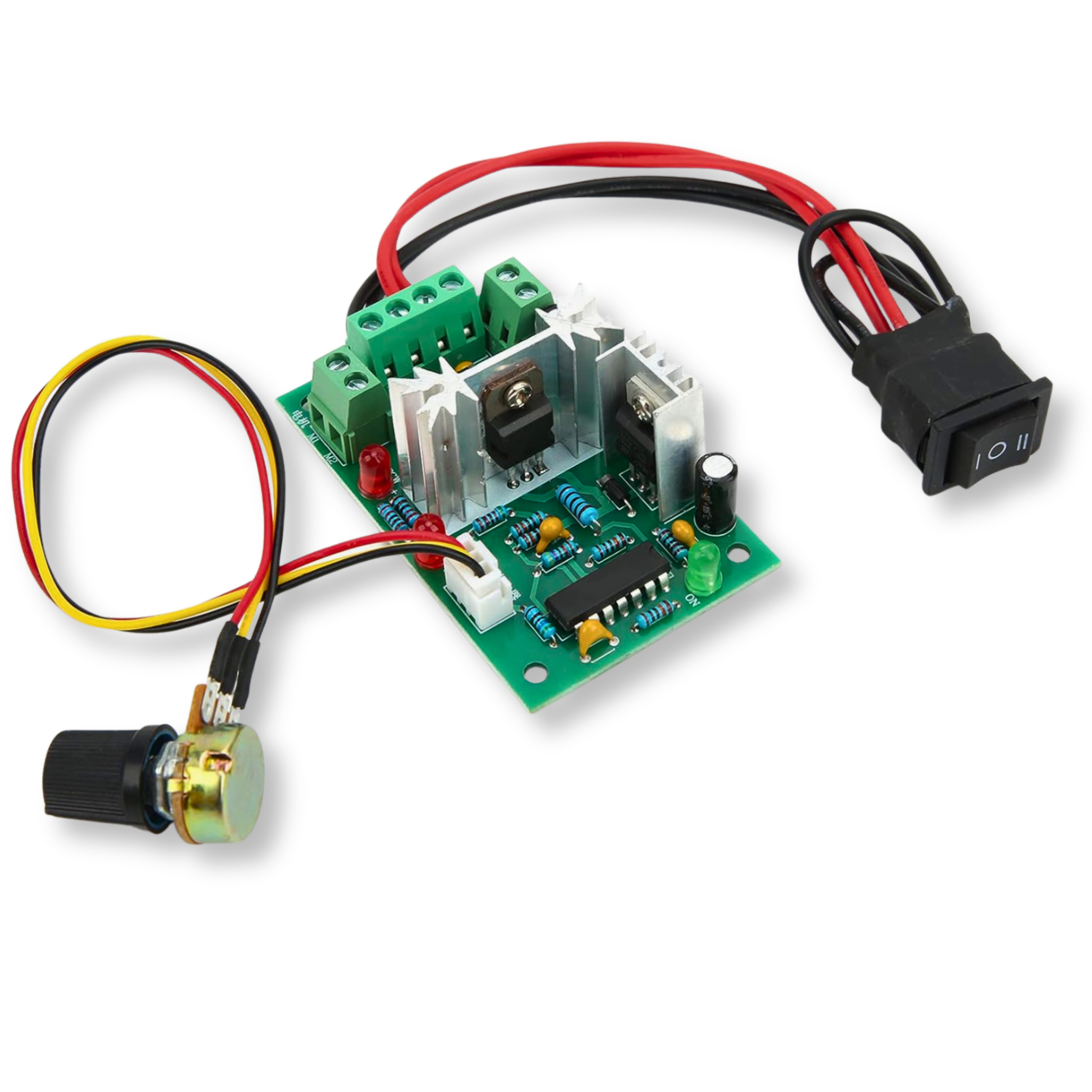 Wszechstronny moduł regulatora PWM został zaprojektowany do efektywnej kontroli prędkości oraz kierunku obrotów silników prądu stałego (DC). Dzięki wbudowanemu potencjometrowi możliwe jest płynne dostosowanie prędkości silnika w zakresie od 0% do 100%. Trójstanowy przełącznik pozwala na intuicyjną zmianę kierunku obrotów (lewo, prawo) oraz natychmiastowe zatrzymanie silnika w pozycji neutralnej.