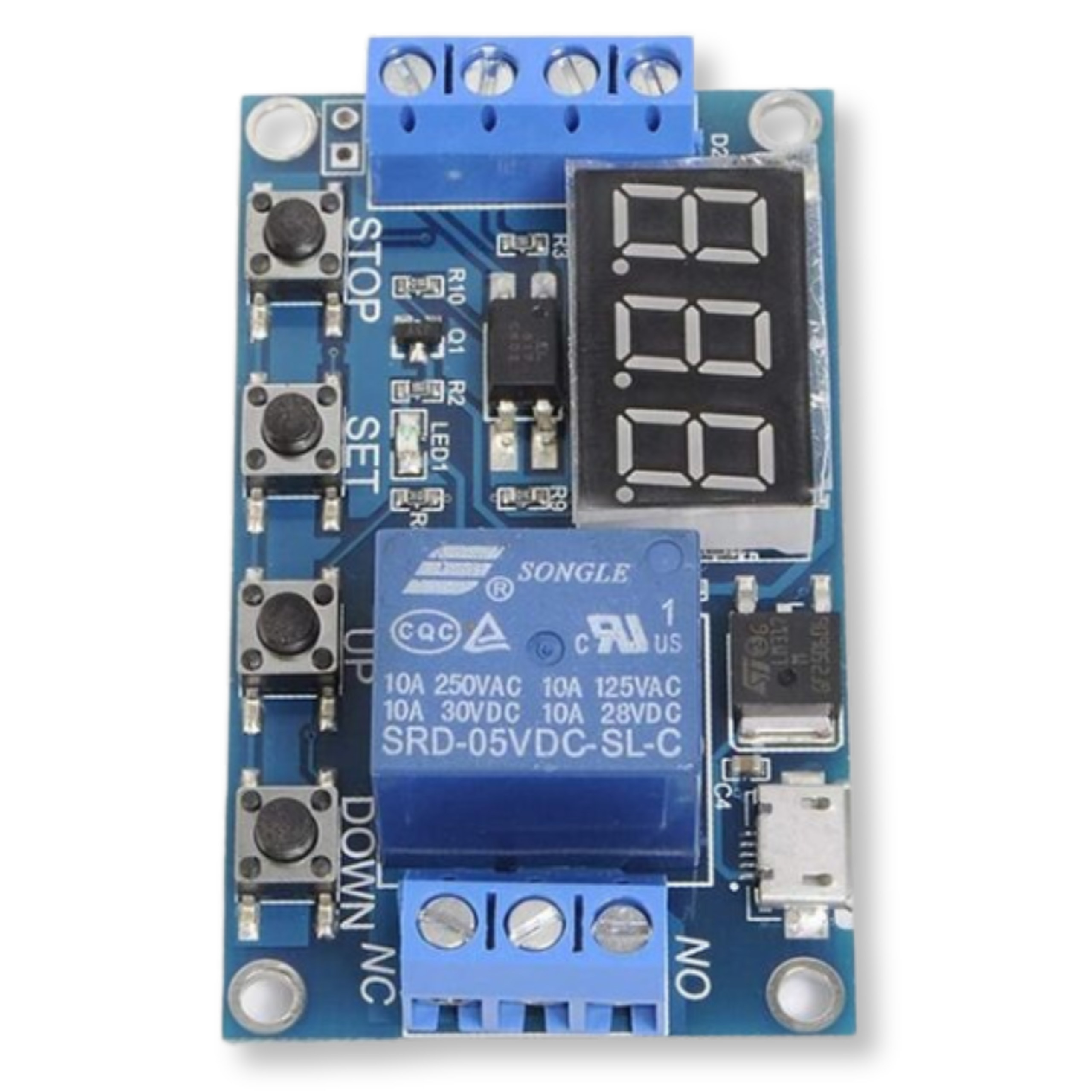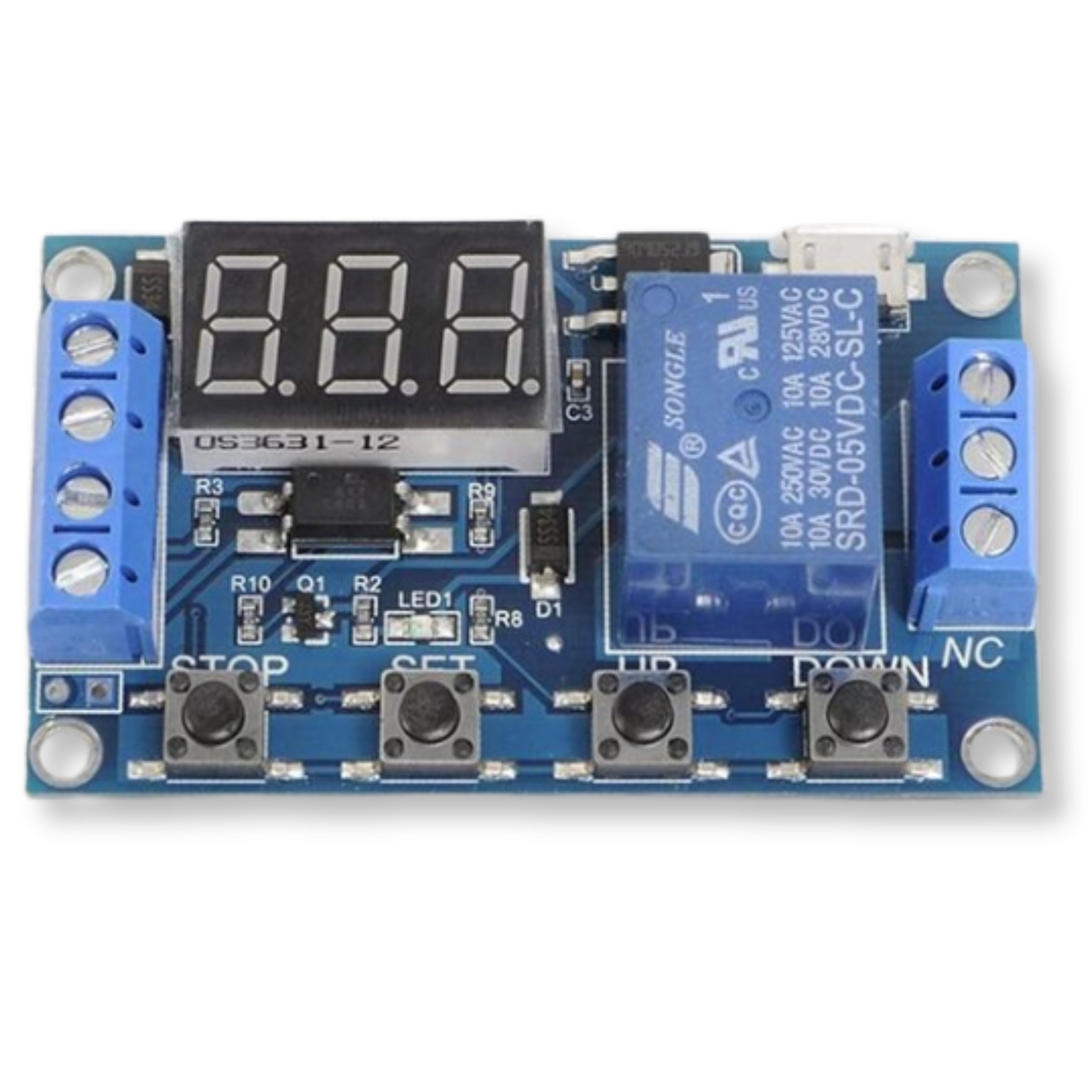 Wszechstronny moduł przekaźnikowy z wbudowanym timerem, idealny do projektów automatyki, w tym do Arduino, do ESP8266, do ESP32 oraz do Raspberry Pi. Oferuje 9 trybów pracy oraz szeroki zakres ustawień czasowych - od 0,1 sekundy do 999 minut, co sprawia, że znajduje zastosowanie w wielu zaawansowanych aplikacjach. Ogromną zaletą układu jest funkcja zapamiętywania ustawień po utracie zasilania.