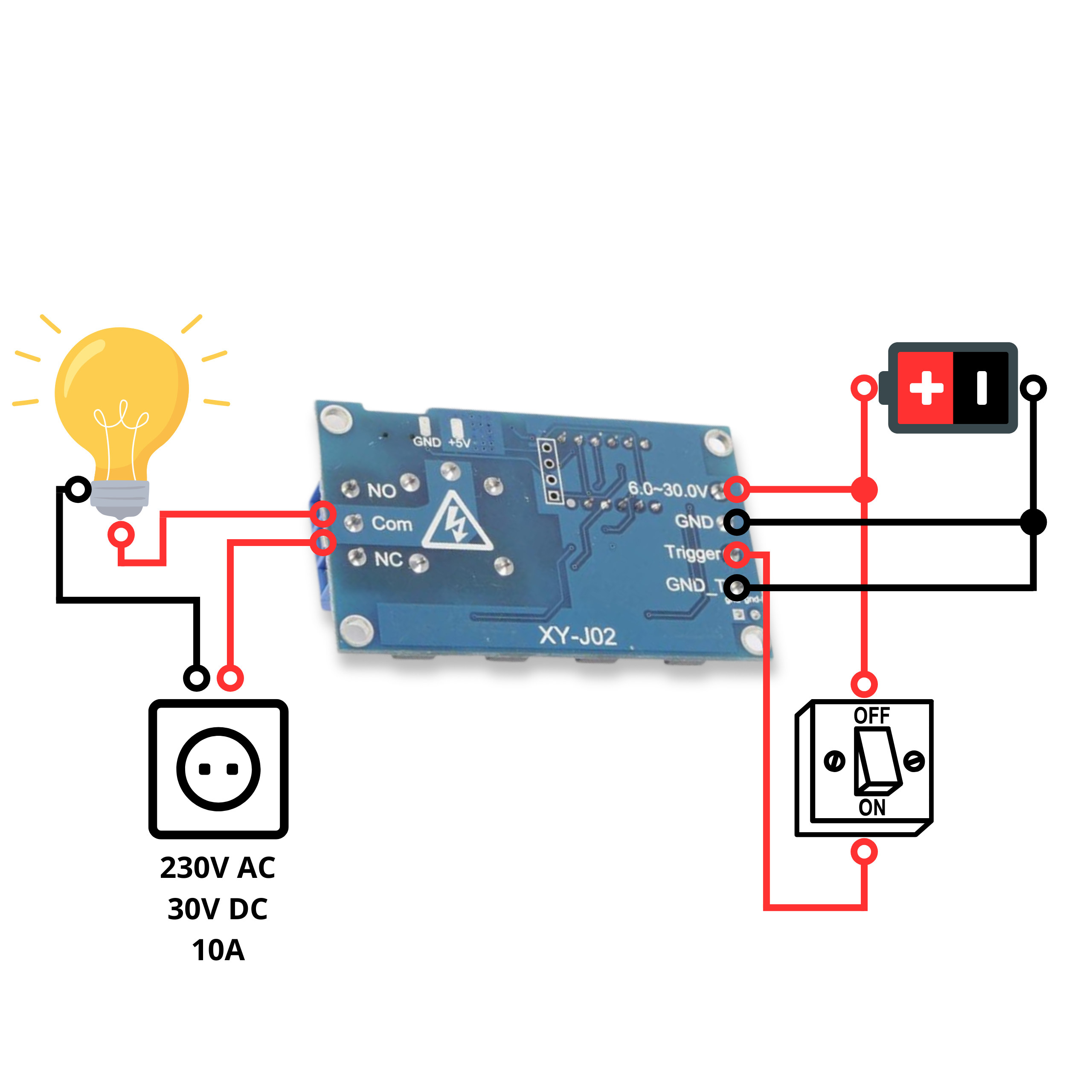 - Obciążalność przekaźnika: 10A przy 250V AC