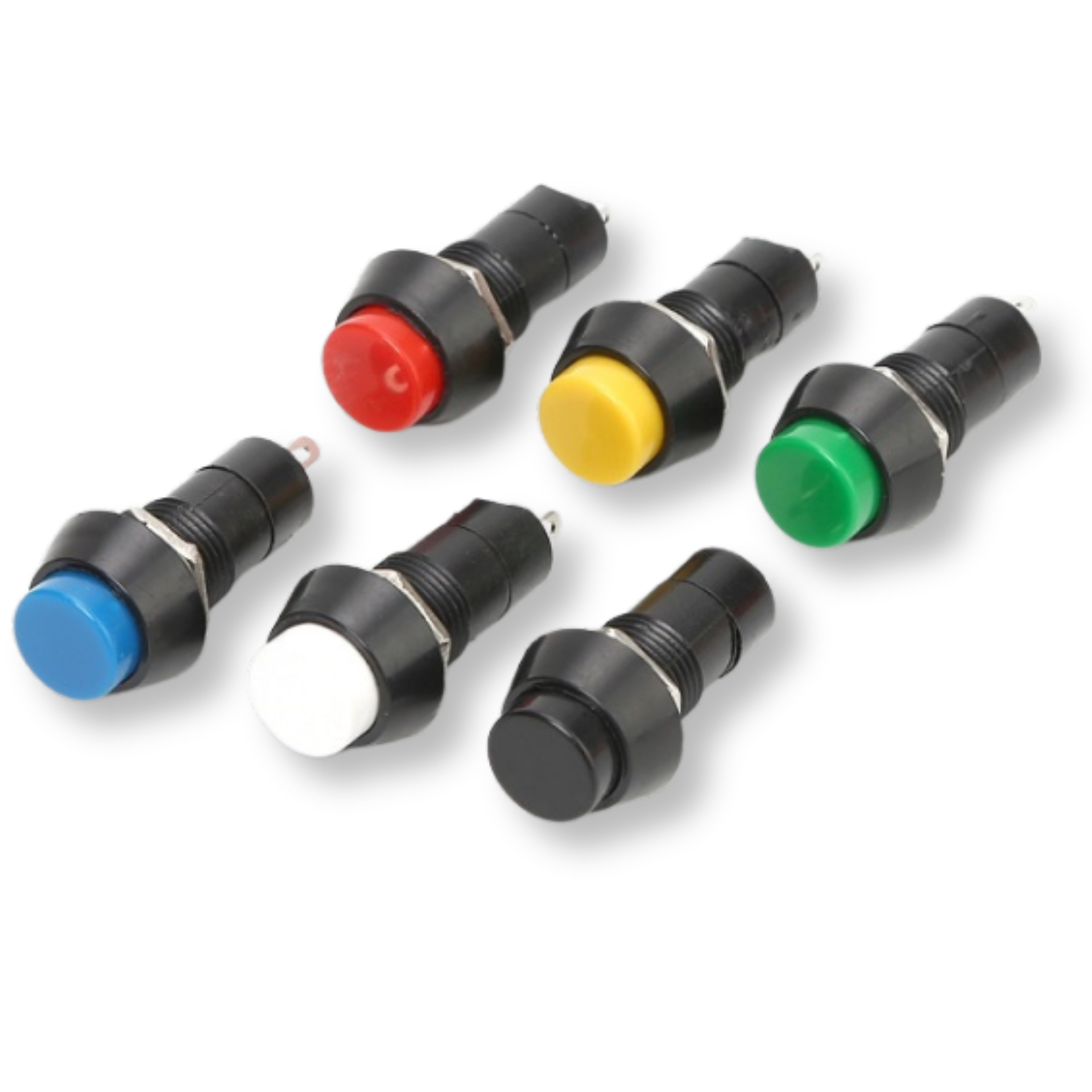 Przycisk PBS-11B to chwilowy element sterujący o działaniu monostabilnym. Zamyka obwód elektryczny wyłącznie w momencie aktywnego wciśnięcia - po zwolnieniu nacisku obwód automatycznie powraca do stanu otwartego (NO - normalnie otwarty). Element wyposażono w standardowy gwint M12, co ułatwia montaż w obudowach i panelach sterowania. Produkt doskonale nadaje się do projektów wykorzystujących mikrokontrolery, w tym do Arduino, do Raspberry Pi, do ESP8266 oraz do ESP32.