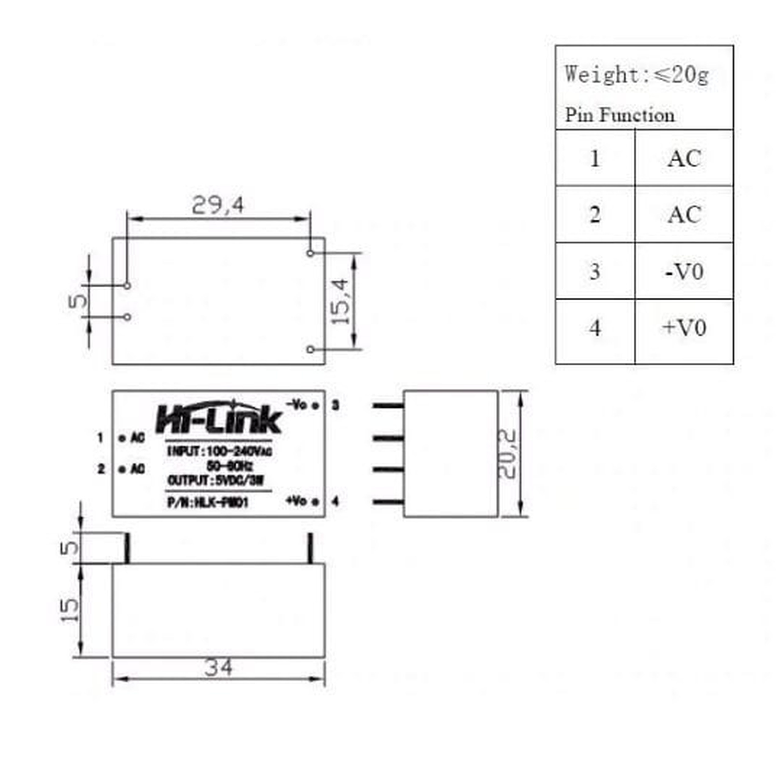 HLK-PM01 Zasilacz AC-DC modułowy 240V - 5V 3W 0.6A Przetwornica do druku
