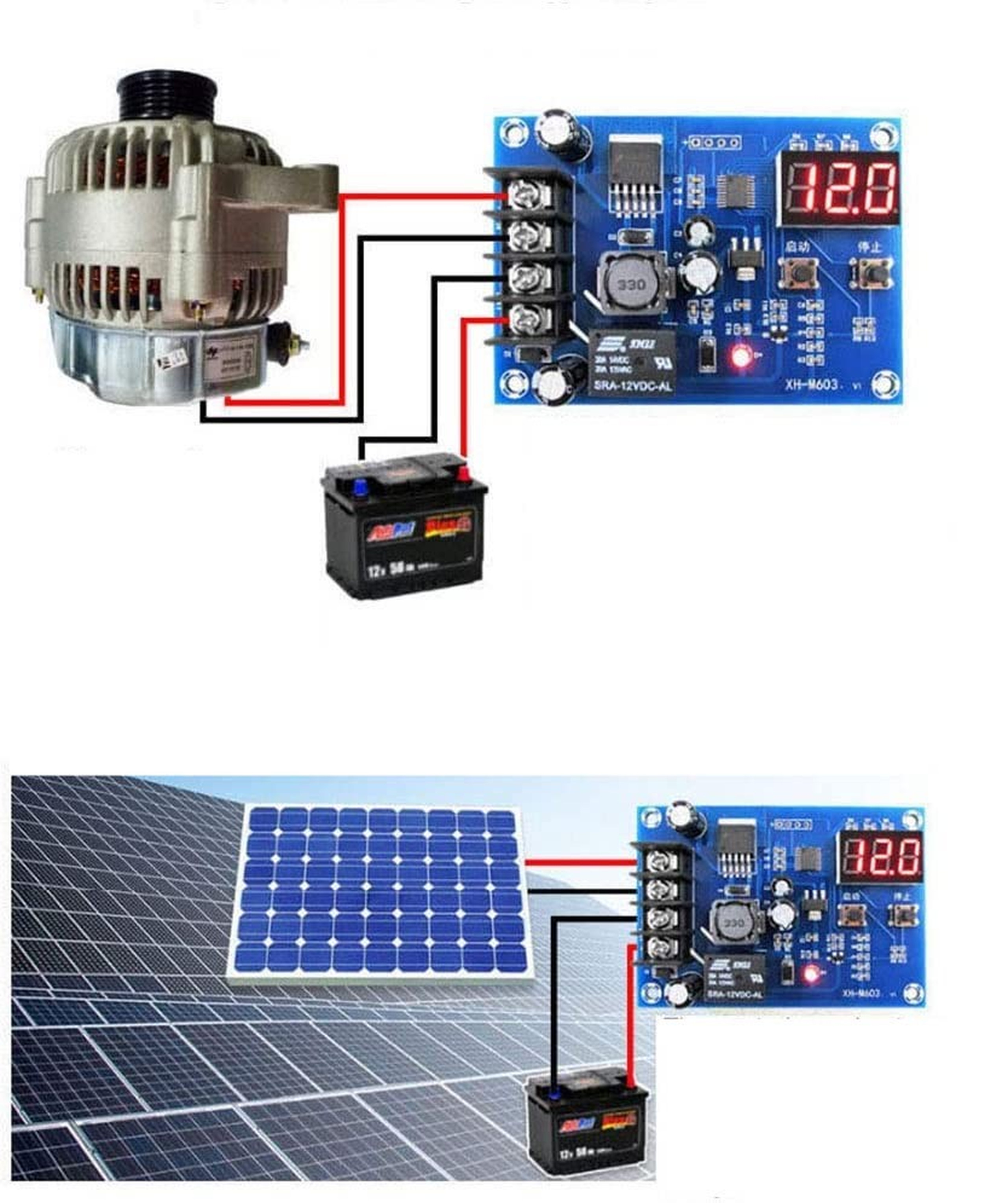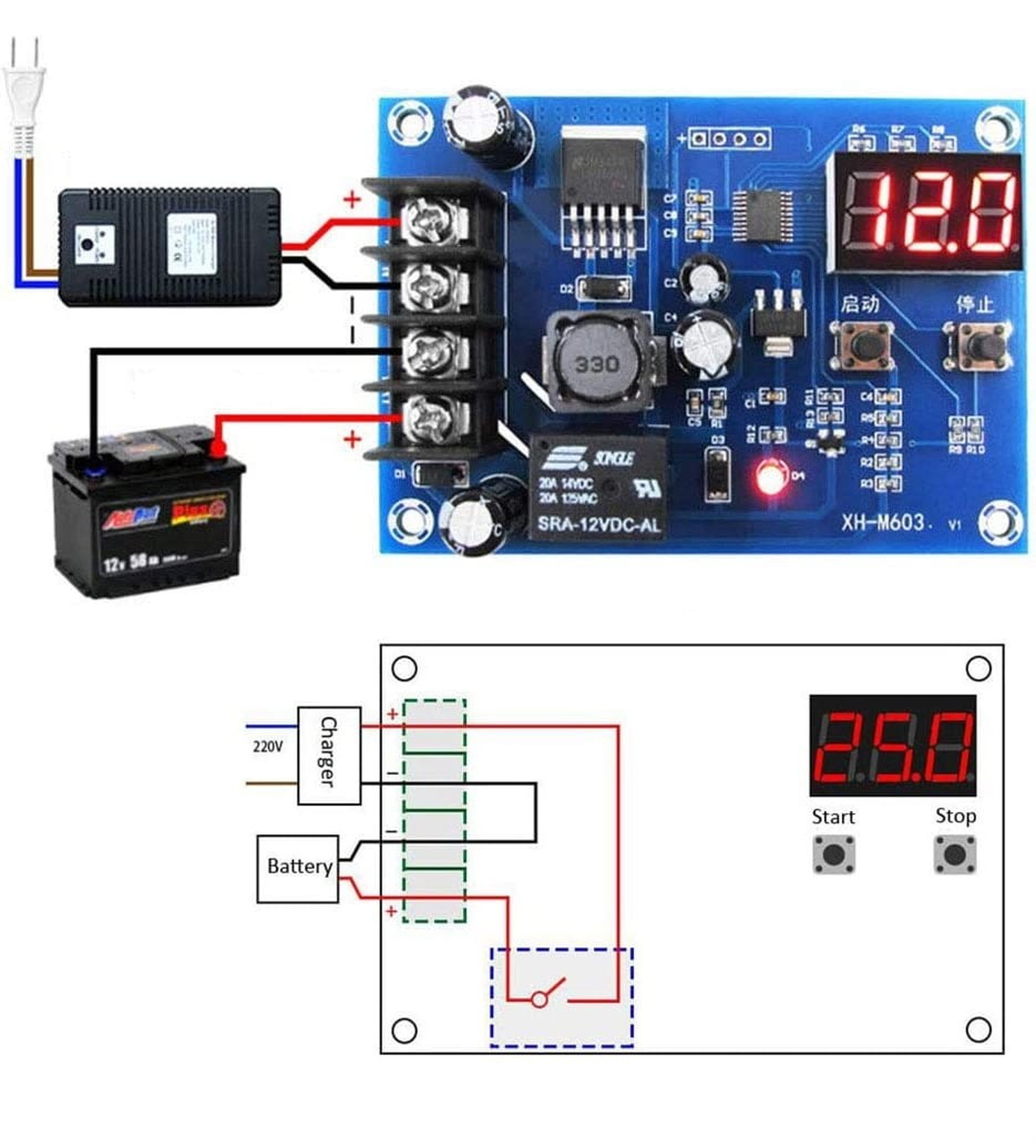 Opis produktu: Moduł XH-M603 sterowania ładowaniem akumulatora 12 - 24V